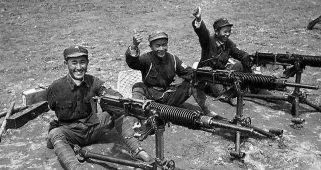 几位八路军围着重机枪坐在地上,最打眼的是左边那位,笑得特别亮。他的右臂已经没了,可人坐在那里,神情一点不颓。那种笑,不是轻松,更像是“苦都吃过了,还能怎么着,照样干”。