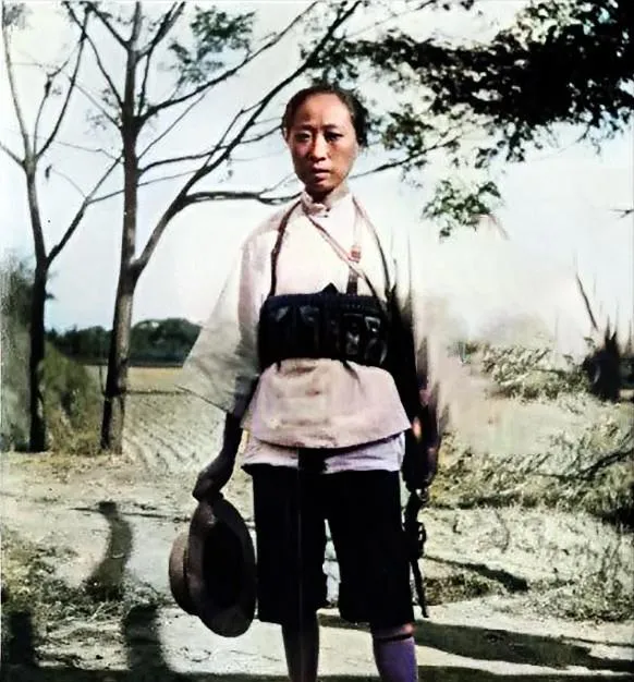 这几张孩子的照片,看得人很不是滋味。头上裹着布,衣服松松垮垮,扣子不一定齐整,手里却拿着大刀或者长杆。尤其前面那个孩子,眼神直直地看着镜头,没有笑,也没有躲闪。