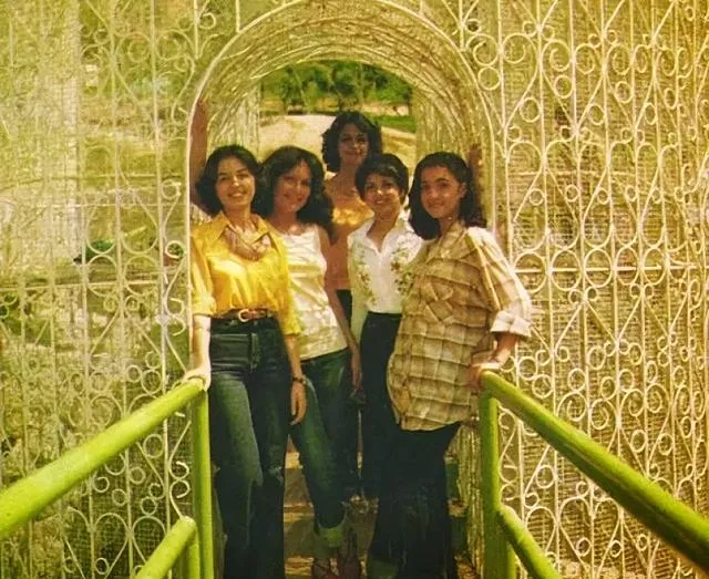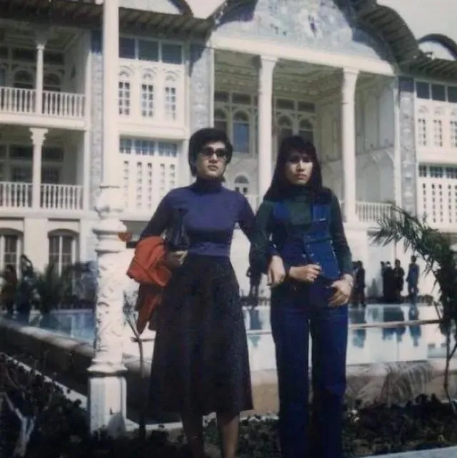 前头站着五个姑娘,你看她们,牛仔裤、衬衫、皮带、花裙子,随意站在花铁栏桥头,背景黄灿灿一片,笑容松弛,举止里都是自在,说句老实话,要不是看到建筑风格,光看穿戴,比咱小时候照片还要“潮”两分,现在伊朗街头,哪还敢这么玩。