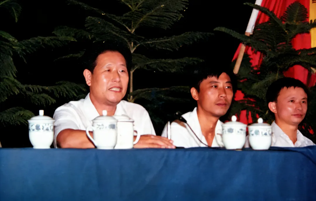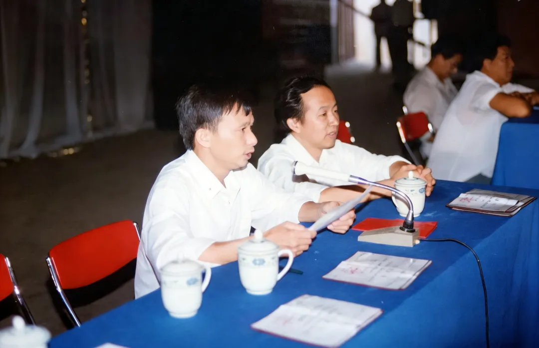 最后两张会议照里,麦克风、文件与盖碗茶,还原当年国企开会主席台的场景。