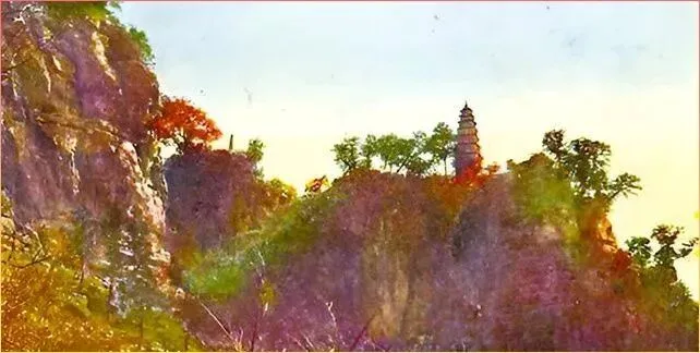 这第一张.,便是千佛.山上的古塔远.眺。瞧.那崖壁陡峭,树木葱茏,山顶的宝塔.在.夕阳余晖中若隐若现。那时候的.千佛山,可.不像现在这般热闹,游人稀少,倒显得格外清.幽。老济南人常说,爬.千.佛山看.日出,那才叫个仙境呢!