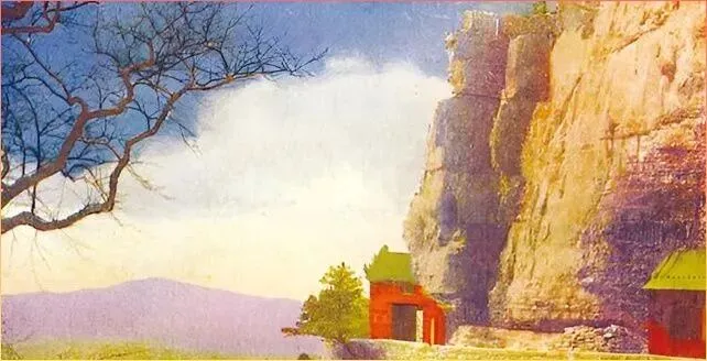 这第二张更有.意思了.,.峭壁.下.的红色.小庙,.依山而建.,旁.边还搭着黄绿色的棚子。这样的景致,如今怕是找不.到原貌了.吧,当年的香客们就是这样,顶着烈日,爬上陡坡,就为了来这儿上.柱香,求个平安顺遂。