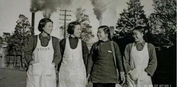 图里四个女职工并排走,外头套着白围裙,身后是冒烟的烟囱,左侧还挂着一排高高的大标语,笑声全写脸上,不摆拍,就是边说边走的真笑,说句实话,那时候大家日子紧巴巴,心里却拧着一股劲,做事有冲劲,说话有股直爽,奶奶常说“那年月就是能扛事,怕啥呀”,白围裙缝的褶子、袖口窝下的小油渍,都是生活的勋章,看着就觉得踏实。