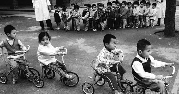 照片上的小三轮车队,前头的孩子推着把儿皱着眉头,后头一长串小豆丁齐刷刷排队等着换,他们抢着骑车的劲头,比抢饺子还热闹,老师站远远盯着,一时半会儿不吆喝孩子都不肯下来,小时候织毛裤捂得紧,小脸冻红都舍不得放手,现在幼儿园玩具堆到角落,谁还管什么自己排队自己玩,“那会儿想骑一次,还得攒着表现好几天”。