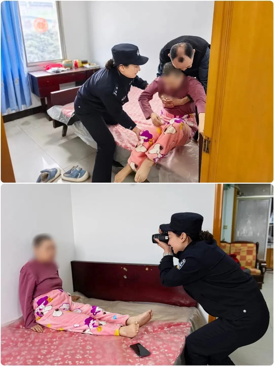 窗口民警谭罗翼主动上门,为瘫痪在床居民办理身份证业务。