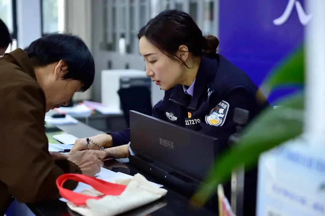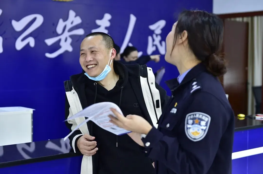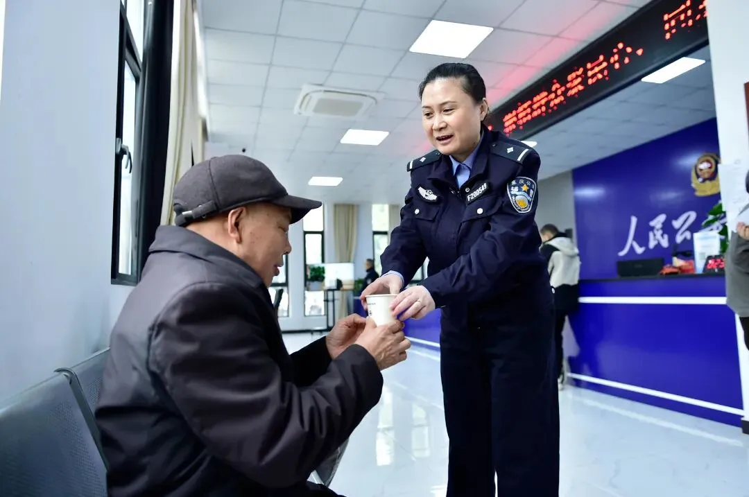 民警全程微笑服务、细致解答,用延时服务的“用心”和便民设施的“暖心”,换得群众办事的“舒心”。
