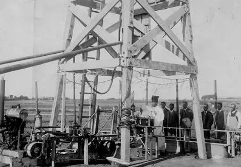 照片里这大木头架子专供打深井用的,几个人站旁边,脸上那劲头特实在,日本人修的净月潭水库,打下的井,全是优先给侨民和日本机关接水管,咱平头百姓呢,还是照旧拿水桶下河挑,爷爷有回路过工地,看着人家机器转了半宿,心里明白这活离自个家老远,水清归清,轮不到自家舀。