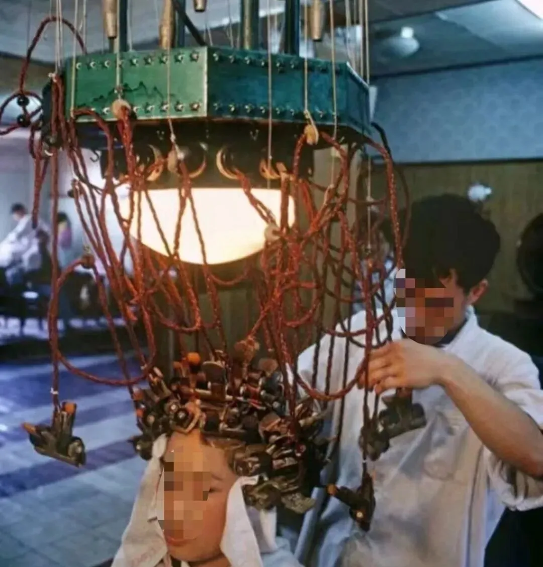 这一堆红线乱七八糟缠头上的机器就是烫头发设备,以前理发店最时髦的家当,得赶个大场合才舍得去一次,机器吊着发热的铁块,电源一开,噼里啪啦地冒热气,烫一次半天起步,旁边人用扇子给你扇风,烫头太烫只能咬牙忍着,烫完头发卷卷的,站门口都得让邻居瞧一眼“你可时髦了”,小姨曾说过,那会儿烫头发可得预约,还不一定轮得上,老人家怕头发烧糊,都劝年轻人别瞎折腾,现在烫发是寻常事,花样多得看都看不完。