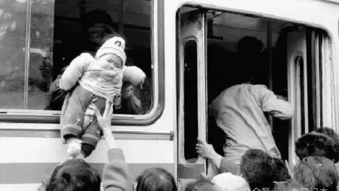 这个画面很多新杭州人真见不着了,图中一位大人把婴儿直接递进公交车窗,那硬朗的棉衣包得结结实实,小脸膨胀得只露出一双眼珠子,外头又是一只大手伸上去稳当接住,旁边排队的人全都挤作一团,小时候长辈总说“那阵公交上个车真要拼”,赶紧的谁也不等谁,有时候小孩先被塞进去,大人再跟着冲,哪像现在还有空调自动门,还有人抱怨公交太挤。
