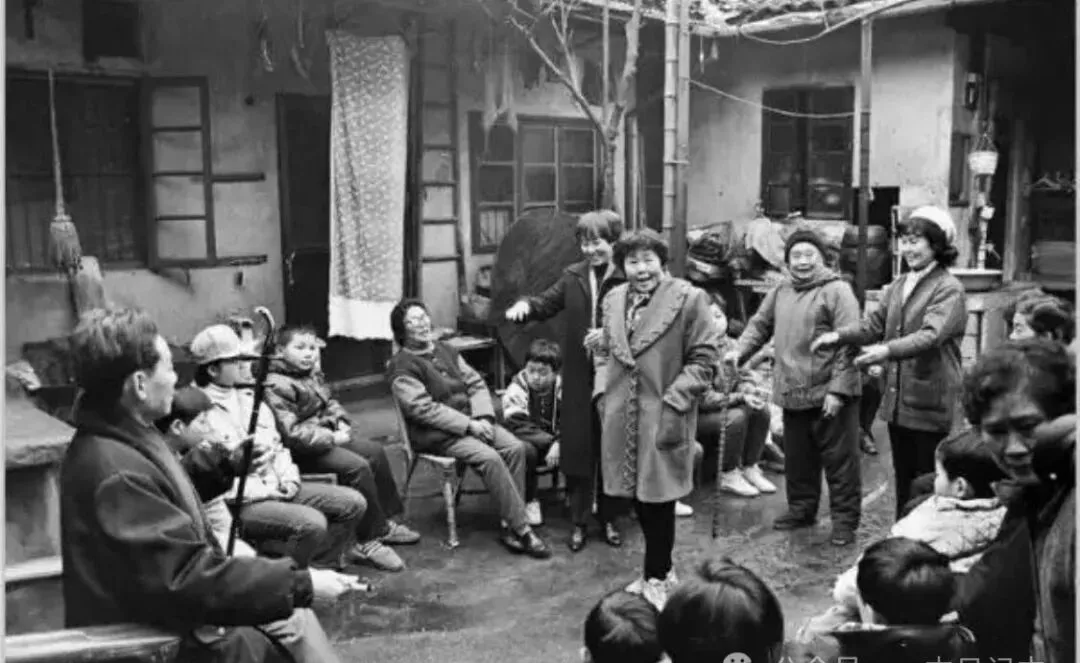 这个院子里的日子,老杭州的邻里情就在这里头了,几位阿姨正对着圈里的邻居表演才艺,大哥拉着二胡,小孩全都凑一块,老人拉着小椅子围观,家里大人边看边唠嗑,孩子们在角落伸长脖子瞅,就这么一阵热闹,屋檐下撑着旧蓬布,阳台上随手扯着晾衣绳,全是柴米油盐的真实,妈妈还爱说一句“远亲不如近邻”,现在邻里关系淡了,谁家大门老是关着,再难找回这种亲切。
