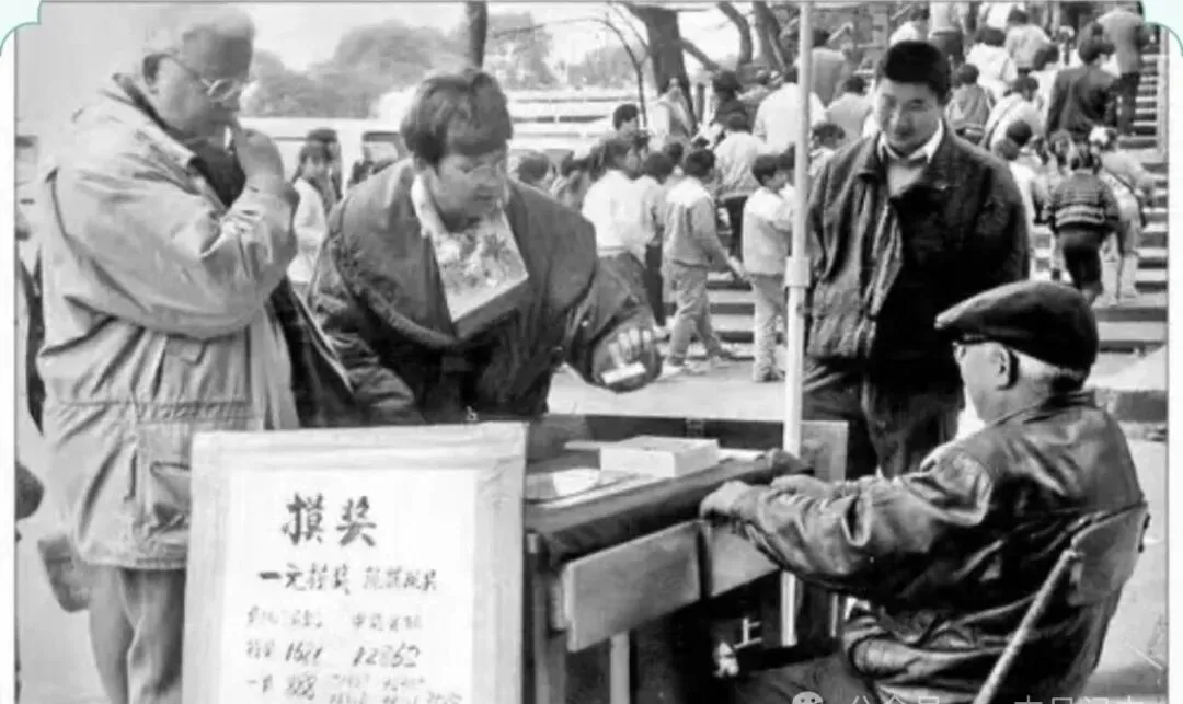 这个牌子上写着“摸奖”,一元一把运气试手气,摊前有几位大叔低头琢磨奖签,后边长队攒动,好多八零后的记忆都在这里头,那会街上还不流行彩票、抽奖什么的,能现场摸一次大奖算是大事,奶奶总笑说“摸一次算攒人品”,一等奖都是好数字,八八八之类,哪像现在连彩票都能扫码买,当年钱不多,图个乐呵,附近还多的是围观的、起哄的,现在小摊都让网络淘汰了。
