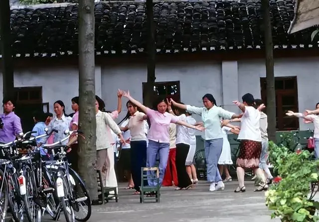 院子里一群女人围成圈子,广播操一首音乐就能带动全小区的早晨,动作不太整齐,衣服都朴素,前头领操的姨大声喊口令,旁边自行车立得齐齐的,没几个男的愿意参与,全靠街坊女人们撑着热闹,晨风一吹,院子成了最天然的“健身房”。