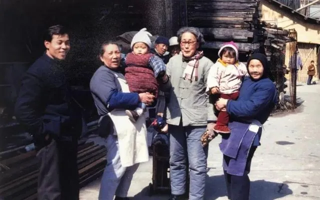 普通人家门口的合照,老一辈揣着毛呢棉袄,怀里搂孩子,男人裤腿卷着,女人身上扎围裙,身边就是高高的柴垛,后头是翻修过的墙,这样的笑脸那时常常有,家里只要出点大事,三代人就得站一块拍张全家福,拍完照片得包点糖,连小孩脸上的冻疮都觉得可爱。