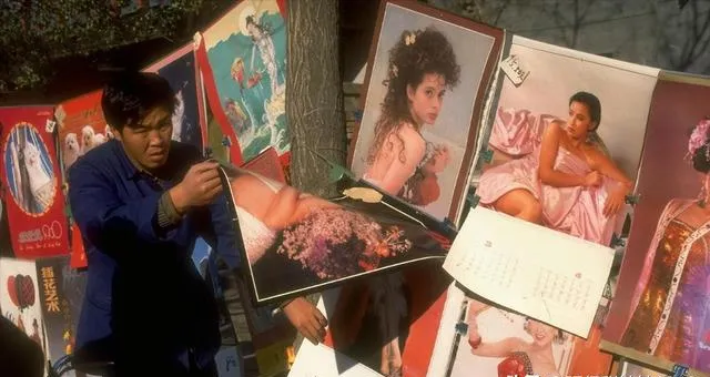 图中男人手里的可不是普通海报,这些年画挂历可比现在的装饰画火多了,年根下,人人都要挑一两张新画,既能看,又能给家里添点喜庆,花哨的女明星、吉祥娃娃都贴得满屋,到现在还记得那纸闻起来的油墨味。