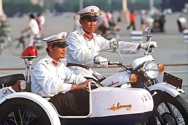 带跨斗的警用摩托,白面漆配红肩章,坐上去威风十足,这警车一过路口,小孩都得停下来多看两眼,这种摩托现在早就成了稀罕物,八十年代街头一眼就能认出来,一帮男孩靠近点,顺手就得摸一把车灯。