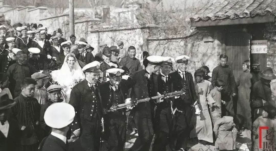 这张不用说,搁那一看就让人有些唏嘘,新娘子身着白纱,笑得像花似的,身边一圈穿着正装的洋人护卫,还有不少中国人挤在街边围观,小孩大人都瞅得新鲜,那年月洋人可稀罕,身份地位高得很,爷爷跟我讲,有时候还得专人护送,想想现在,哪还分这些,生活水涨船高,咱自个儿办事心里硬气。
