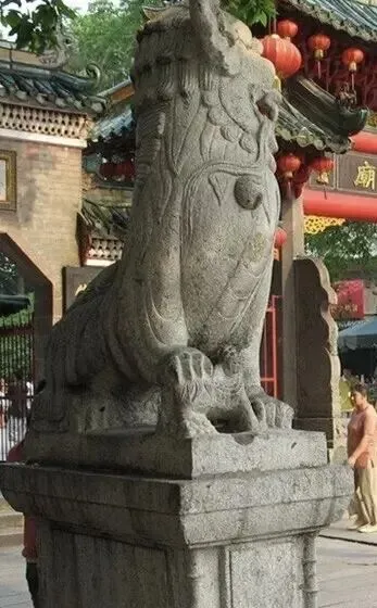 再看那老照片上的石狮子是左前脚摸着小狮子,而祖庙的石狮子都是右前脚摸着小狮子。