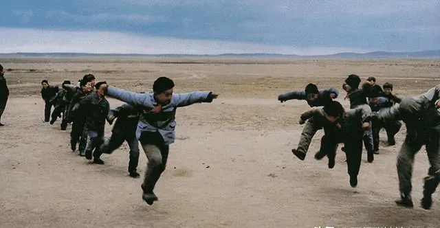 这一群孩子撒着欢在旷野狂奔,风沙刮在脸上也由它去,袖子破了没人介意,队伍里一半人张开胳膊学小鸟,跑得最快的冲在前头,不分南北,那一个时代泥土味儿最熟,人没躲屋里,谁摔倒都不哭,爬起来擦擦灰,回头还得比谁跑得远,回到家奶奶问一句“跑累了,洗洗脸去”,满头汗水带着砂子,都觉得爽快。