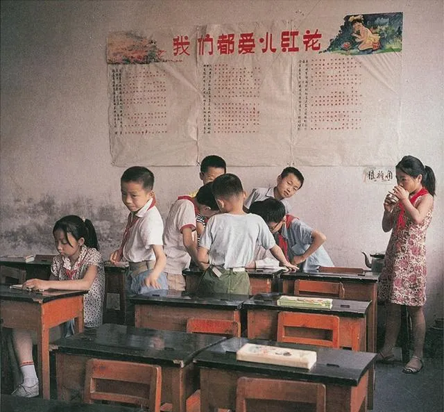 图里孩子们可还记得,这班上的课桌椅都是老爸老妈亲手修过的,桌面木头黑亮亮,角上磕掉一块漆也没人嫌,最有劲的还是那面墙上的大字,“我们都爱少儿红花”,抬头一看就有劲,教室里没有花哨的摆设,一屋子的认真,一屋子的笑声,有课吃书,有空跟着老师起哄,谁能想到,现在的孩子见到这样的教室,大多只能在老照片里打照面。