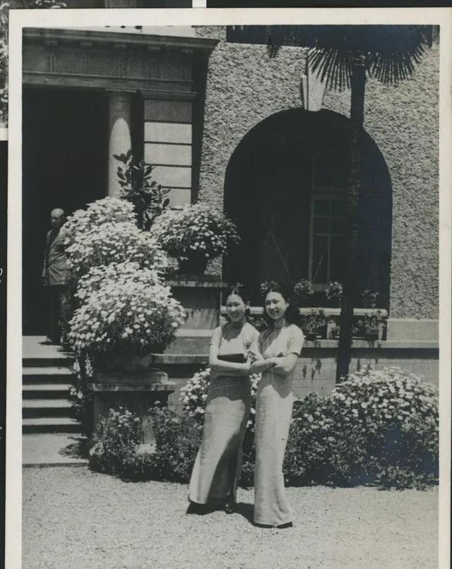 赵四和姐妹站在宅邸前那张,挺能刷新印象。院子里花木收拾得很整,房子是明显的洋式建筑,两人穿着修身长裙,站姿也很自然。很多人提到那个年代,总爱一股脑儿往“旧”上想,可这张里分明已经有了现代都市生活的影子。