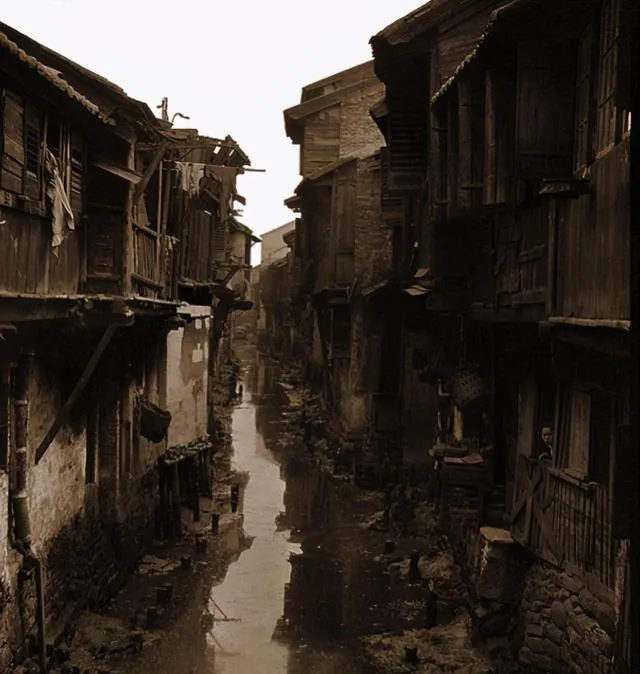那条又窄又湿的老巷子,看着就让人闻到潮气。木楼往外探,水沟贴着房子走,天光只剩一线。很多人总把旧时光想得很美,可真实的旧生活,有漂亮的一面,也有逼仄、简陋甚至难熬的一面。