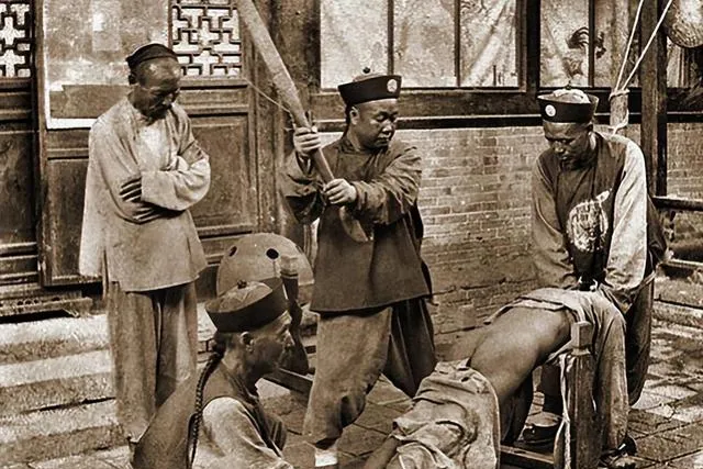 最后那张行刑照片,看着最沉。几个人围着一个受罚的人,动作很重,旁边还有围观者。它不“好看”,但很重要。因为它提醒我们,过去不是只有旧衣裳、老院子和慢日子,过去也有严苛的规矩,有普通人躲不开的苦处。