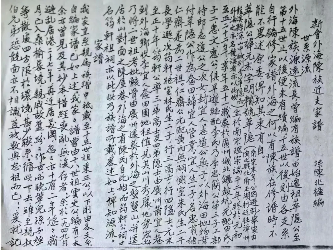 这是广东省立中山图书馆珍藏的一张清末老照片。照片中,是新会县外海乡(今江门市江海区外海街道)南华里的一个大家庭,他们与国叔陈少白先生是同族近亲,比邻而居,从自家阁楼上,便能望到白园的一草一木。照片由陈玉珮收藏,后经其侄孙陈侃伉俪捐献给省中山图书馆。人物注释为笔者所加。照片大约摄于清光绪34年(1908年),至今已近一百二十年。照片中只有妇人和孩童,分别是长子树田之妻及其子女玉珮(16岁)、兆畦(13岁)、兆畴(9岁)、楚珩(3岁),次子树楠之妻及其子兆楹(9岁),四子树榕(23岁),七子树炳(13岁),八子树焘(10岁)等。男丁还是剃发梳辫瓜皮帽,但个别人已颇为时髦地戴上日式学生帽。其时这个家庭的男主人梅溪公及其成年子嗣树田、树楠、树杰,正远在香港、东北谋生。梅溪公少时家境贫寒,同治十年(1871年)远赴日本,从事贸易、船运兼协助清廷的外交事务,又在香港、东北开设商行。他走南闯北,见识广博,尤为重视后辈教育。然而时局动荡,谋生维艰,这个大家庭时常捉襟见肘。所幸子孙辈都咬紧牙关、节衣缩食,从未放弃求学之路。多年后,他们陆续考入北京名校。其中陈兆畦、兆畴、兆楹三人入读国立北京大学,树炳、树焘入读北京税务专门学校,楚珩入读国立北平大学女子文理学院,玉珮入读民国大学预科。兆畦、兆畴、楚珩日后成为著名的大学教授,其余人亦在各自领域卓有建树。现将他们的事迹简介如下。陈兆畦,字君璧,是中国核农业先驱。1916年,由唐山铁路学校转入北京大学化学系,毕业后留北大任研究员及助教,随后入读北京协和医院生物化学系,1924年获硕士学位,任教于协和医学院、上海交大、西部科学院理化研究所,五十年代公派苏联考察学习,回国后组建中国农科院原子能利用研究室,晚年在西南农学院任教。现西南大学有“兆畦楼”以纪念他。详见中国核农学先驱陈兆畦教授陈兆畴(1899-1982),字穗庭,民国时期著名的英文教授。他只读过几个月的中学,凭勤奋自学与天份,于1917年高分考入北京大学英文系,与罗家伦同班,成为胡适、辜鸿铭的学生,是北大新潮社创社成员,亦是五四运动风云人物,毕业后留北大任讲师,其后在湖南大学、贵州大学、广西大学等高校任英文教授及系主任。学识渊博,擅诗词,亦是早期的社会学研究者。笔者去年整理其遗作编印《陈兆畴诗文集》。详见《陈兆畴诗文集》结集付梓,选发部分内容五邑乡贤 | 传闻被打“五十军棍”的北大学生陈兆畴的故事陈兆楹(1899-1995),字君巩,1923年毕业于北京大学地质系,担任安徽芜湖裕繁铁矿公司、四川綦江铁矿公司等处采矿工程师,后赴港成立五福石墨公司,是《龙溪志略续编》编委之一,晚年定居美国。编写《新会外海陈族近支家谱》,颇具地方文史价值。陈楚珩(1905-1984),原名杏裳,从小聪颖,1930年以第一名毕业于国立北平大学女子学院外国语文学系,其后赴美进修,归国后先后在东吴大学、复旦大学、浙江大学、湖南大学、贵州大学、北京劳动大学、解放军外语学校担任英文教授。与著名翻译家陈逵亦师亦友,亦是作家谢冰莹好友。陈楚珩(二排左三)与同行赴美留学生在邮轮上(1930年)陈楚珩翻译的外国文学(原载1941年《湖南大学期刊》)陈树炳(1895-1969),号藜轩,1917年肄业于北京税务专门学校,先后在广州海关、南京国民政府铁道部、财政部任职。陈树炳擅诗,虽仅存世两首,读之沉郁顿挫,可见其胸襟气概。其外孙陈欣为画家,曾书录其诗作。陈树榕(1885-1965),号韵涛,出生于日本,四岁回国,后就读香港育才学院,又随长兄赴哈尔滨攻读俄文,先后任职于哈尔滨海关、汕头海关、江门海关、澳门拱北关、上海江海关。四九年后迁居香港。树榕于三十年代任职江门海关期间,在江门北街购置有花园洋楼,据闻建筑物至今尚存。陈树焘(1898-1944),就读于北京税务专门学校,工作后任锦州盐税局长、其后任职江苏淮海、广西北海及广东多地税局。陈玉珮,原名绣裳。从广州道根女子学校毕业后,到北京民国大学预科、广东国民大学就读。曾任广州执信中学舍监(教务主任),是朱执信夫人杨道仪的得力干将,后回家乡新会外海创办贤贤小学并任校长,又参与创办外海莘隐中学,五十年代后任第四小学、直冲小学校长,创办龙溪诗画社并任社长,是外海有名的文化界女强人。陈玉珮与堂弟兆明、树炳之女德麟、兆畴之女陈瑗摄于南华里祖屋(80年代末)尾声