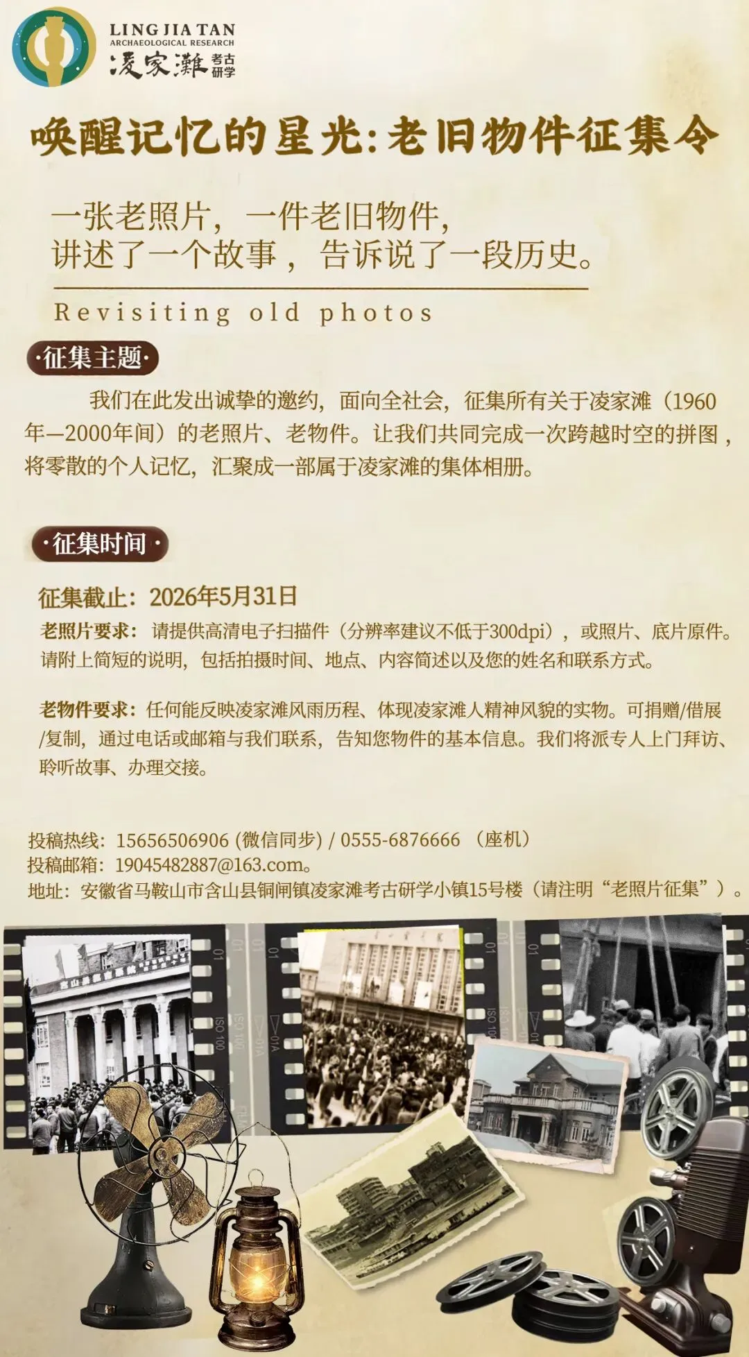 地址:安徽省马鞍山市含山县铜闸镇凌家滩考古研学小镇15号楼(请注明“老物件征集”)