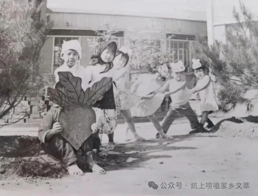 刚进县城的时候,上班的职工们都是在单位附近 ,城关四铺的村里租民房,和居民一块居住,租房不叫租房,叫住房,后来各个单位买地皮盖家属院分配给职工,那是后话了,我们是上幼儿园的第一批孩子,入园的那天,一群娃娃哭喊声四起,都是在村里,被爷奶溺爱的小霸王们,神兽进笼换了新环境,不适应是正常的,呆几天就都老实了,毕竟孩子爱玩是天性,幼儿园里的高级设施,也是唯一的高科技玩具,就是个绿色的大铁转椅,上面是一堆小椅子,几个娃娃坐上去,别的娃娃就使劲推转起来,下来一个个的跟醉鬼一样,还有哇哇呕吐的,天天玩的不亦乐乎 ,园里的女老师都叫阿姨,男老师和做饭的男厨师都叫大叔叔(shou),他们非常和蔼可亲,和照顾自己的孩子一样 ,呵护着我们这些祖国的花骨朵。