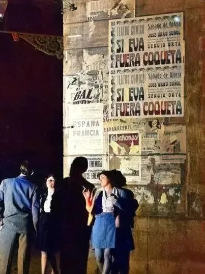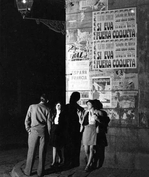 这个地方在大街拐弯,墙上一水的**“COQUETA”**字样广告贴成一片,三五个人缩着身子站墙角,小姑娘戴着围巾,灯底下讨论生意还是打趣,看不真切,有的一边看报纸一边卖个笑脸,有的只顾站在阴影里吞烟圈,半夜里各自都在等一桌明天饭钱。