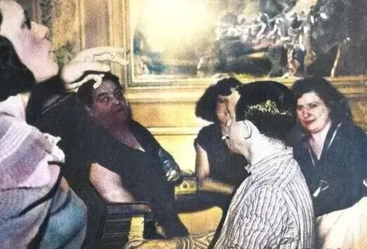 图中这个小厅里,几个女人围着钢琴,手指落在琴键上,有唱有笑,最前头大姐扯着嗓子唱得正高兴,边上人凑着伴奏,胖女人眯眼哼着歌,气氛都在那点碎灯光里打转,有时候青楼的夜,确实比外头还热闹,喝着酒,拍着手,活得自在。