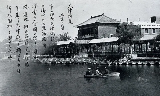 照片里一只木船靠岸,穿白衣的几个人划着小桨,亭台水榭倒影在河边,有空的人在树下乘凉,诗意就在眼前晃,一船闲人顺流而下,上岸的人大多不慌,能这样偷得半天闲,现在公园虽在,坐船的人没几个了,更别说这般悠闲。