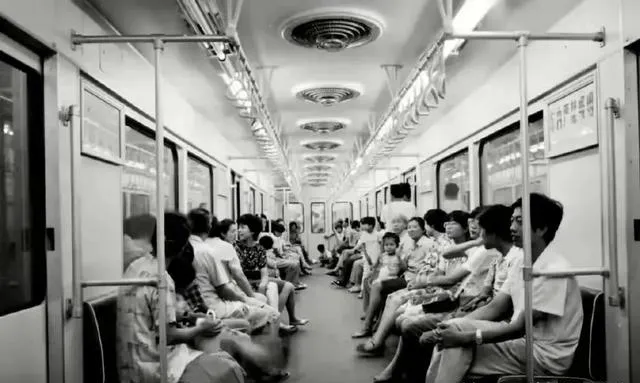 四十年前地铁车厢,车座宽,头顶老式风扇,大家坐得满满当当,空调还没普及,空气里嗡嗡的都是人声,没人低头玩手机,大家都抬头东张西望,看人看窗外,连小孩都不喊闹,这坐车的劲现在见不到了。