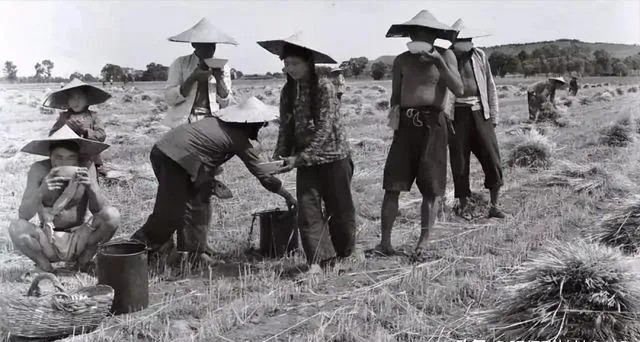 收割累了刹那歇口气,田埂边上支着陶罐和搪瓷碗,有人半蹲着咋呼一声:“快点来喝点水,大伙歇会儿”,帽子压得低低的,背心湿了一大块,脸上全是汗泥掺着阳光,喝水的动作都带点急,手里的碗还咕咚咕咚下去,那味道,就跟现在喝饮料可不一样。