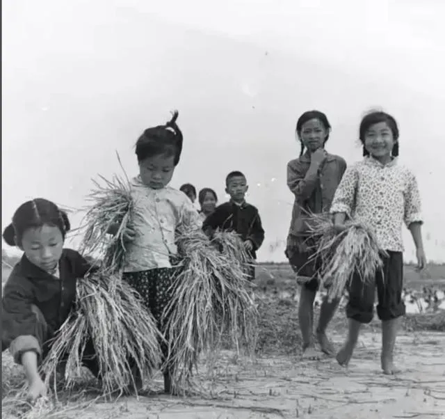 几个孩子弯腰在稻田里捡秧苗,衣服底下还有老大姐穿剩下的补丁裤,捧一把泥湿稻苗呲着牙笑,这种情景现在稀罕了,那时候孩子没人“放着玩”,一到农忙都要下地帮忙,手上虽没劲,可也学着递水送饭,连最小的都知道“多帮点是大人说的好孩子”。