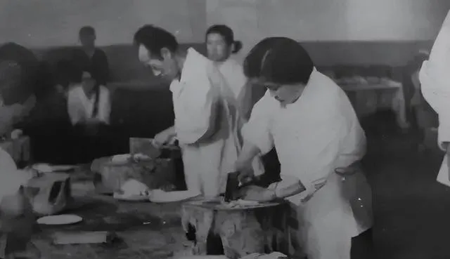 看后厨照片,第一眼会觉得朴素,第二眼就会发现,那个年代做饭是很认真的。案板厚重,碗一摞摞摆着,师傅穿着白衣,低着头切菜,动作很利索。没有现在那么多机器帮忙,备菜全靠手上功夫。说实话,这一点我是真有点感触。以前总有人觉得老饭店条件差,可你真看这些照片,反而能感觉到一种扎实:菜少归少,样式没那么花,但下刀、配料、起锅,都有规矩。那时很多人一年也吃不上几回馆子,所以饭店里的每一道菜,都得对得起顾客那点不容易花出去的钱。