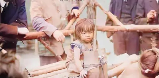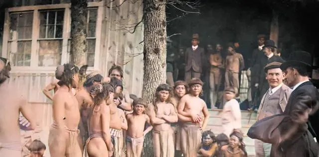 照片里成群的孩子,只穿着半身布片,被人按着站成两排,旁边西装礼帽的人,胳膊背在身后,嘴里念叨些谁能听懂的话,屋前光影扫过,孩子皮肤都被照得发白,有人游走有人呆站,看起来像群戏的排练,其实谁都没得选,哪个不老实一点就要被喝住。