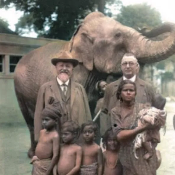 百年前“人类动物园”老照片:土著母女被展览,大熊猫被狼狗撕咬