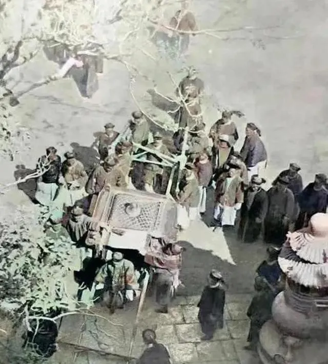 这张老照片,光绪皇帝就在轿子里头,周围围满了人,秋冬阳光淡淡的斜着撒下去,队伍绵延紧紧挤着,最前头几个人挑着肩,后面大多低着头不说话,谁也看不清里面坐的是皇帝还是哪个大臣,听我奶奶说,这年代拍皇帝是大逆不道的事情,哪能让外人拍,外国人胆子大咧咧站远处举着相机,赶巧留下了唯一这张正经照片,也就靠这偷偷一拍,给后人留了点念想,现在想想,真是可惜,连个正脸都没有。