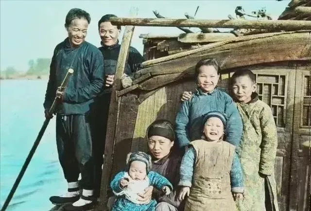 这个照片,渔船上一家人全笑得打开花了,靠河吃饭的日子虽清苦也自在,最好认的是男人那根篙杆,女人靠水洗衣,孩子爬在船头晒太阳,这生活场景,电视里演不了那个味,咱小时候在江南水边也见过这样人家,一家人挤一条船,眉头舒展不用多说其他话。