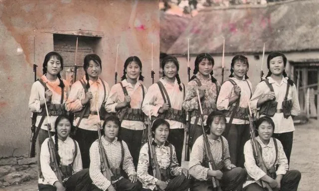 这张合影里的几个姑娘,手里拎着长枪,身上是简单的白衬衣和卡其色裤子,辫子又粗又长,正站在老土墙下,阳光照着脸上,没谁笑得不好意思,全都有点飒,这种集体照小时候经常能在大队活动室的墙上见到,妈妈说她年轻那会儿也当过一阵子民兵,训练一天胳膊抬不起来,衣服早就被汗水打成了花,家里人谁都没当宝看,觉得那就是正经事,现在要是姑娘们把辫子这么往后甩,别说扛枪了,家里估计都得劝。