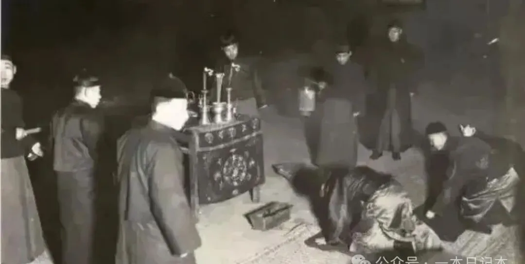 照片里的仪式叫迎财神,是一大家人夜里点着灯叩拜神案,有人跪着磕头,有人提灯照明,还剩烟火气和敬畏劲,爸爸说小时候除夕夜一到爷爷必定带着孩子们按顺序磕头,叩三九、敬神明,愿新年家里红火,敬神迎财神,主打一个“心诚则灵”,现在烟花炮竹一响,财神送到门口,气氛少了点仪式感。