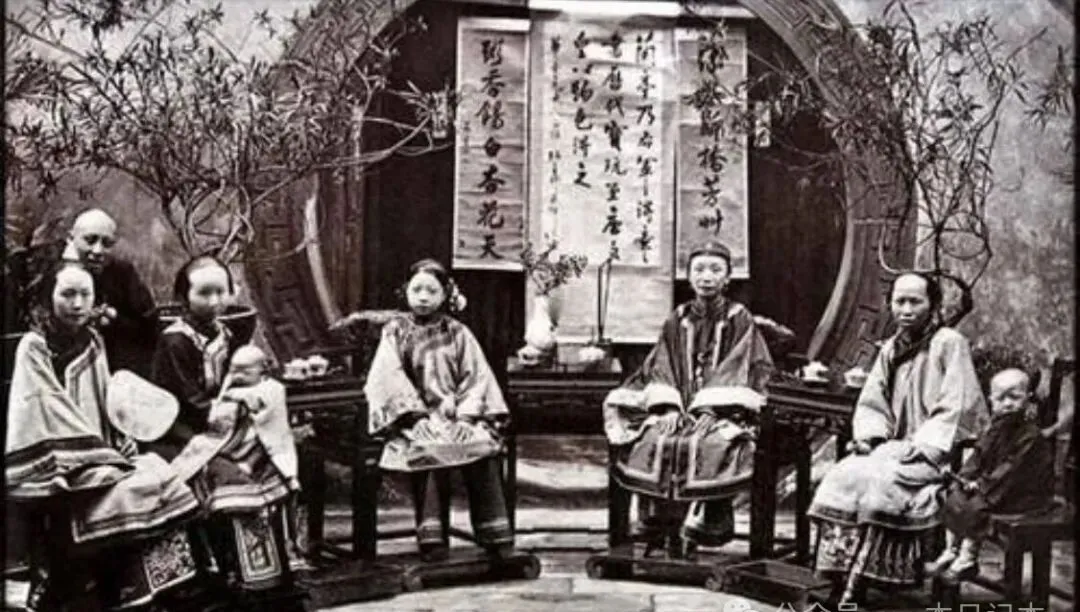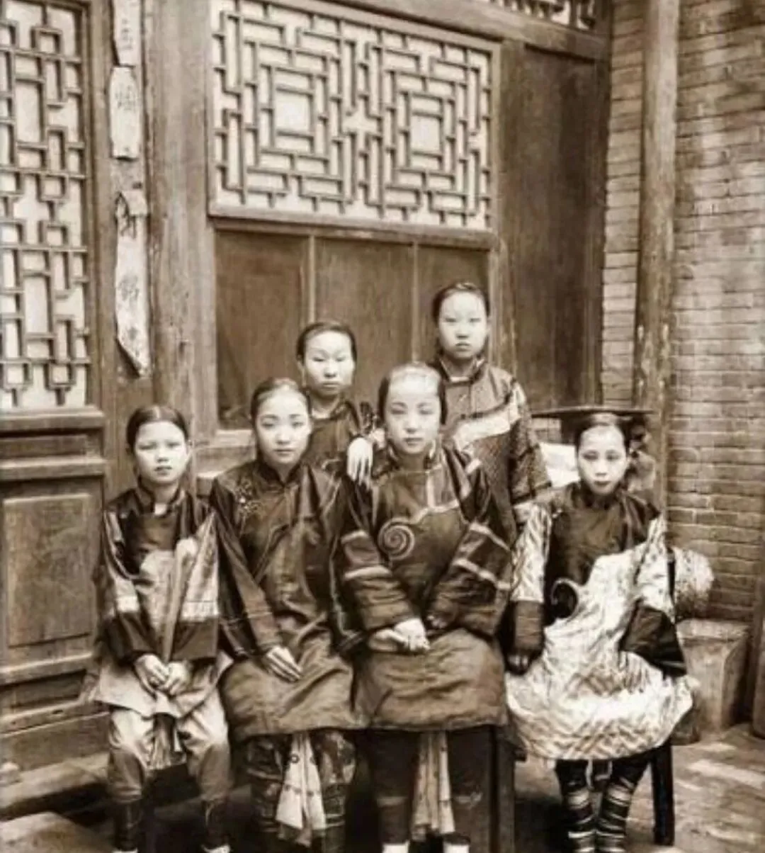 姑娘们一排排坐着,全都盘着层层叠叠的长袍,膝下全是缠脚的小鞋,一列下来半点不走样,衣裳鲜亮可笑容都压在嘴角里,外人看来风光,屋门一关满是规矩和桎梏,现在小姑娘看都觉得不可思议,那年月谁也不能有自己的主意。