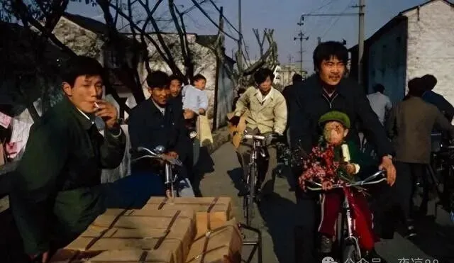 八十年代谁家有辆自行车,那叫倍儿有面子,图里老少爷们挤成一团,满街都是脚蹬车,好家伙,带娃的、拉货的,后座上的孩子抱着一把花,跟着大人晃来晃去,有人点根烟一口一口抽着,路上碰到熟人轻轻一响铃铛,都是“诶,哪去啦”的热闹场面,这劲头搁现在大马路基本找不着,电动车飞来飞去,谁还舍得慢悠悠叨咕两句。