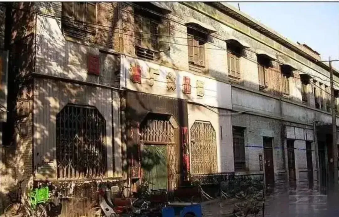 往后看,味道就更浓了。窄巷子里电线低低地拉着,墙皮起卷,卷闸门半旧不旧,这种街景真不是摆拍能拍出来的。那张疑似老百货或旧商铺外墙的照片,我第一眼注意到的是已经褪得快看不清的字。以前这样的地方可不冷清,扯布、买糖、称点瓜子花生,逢年过节还得挤着进。还有那座砖墙老厂房,门厚、窗高,像是把一阵阵缝纫机声、搬运声都关在了里面。