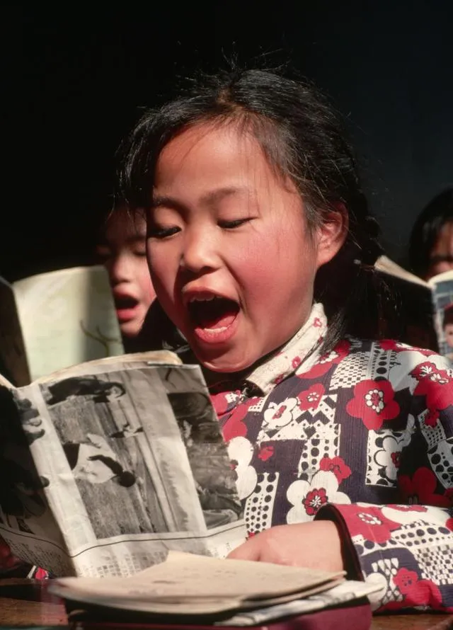 这个照片上小姑娘一张嘴,嗓门全开,红扑扑的脸蛋写着认真,课本是黑白印刷纸,唱歌不看曲谱只看老师动作,阳光从窗户照进来,一排人唠嗑似的跟着唱,老师讲“用声音唱出来”,没谁在意是不是跑调了,快乐来得特简单,现在孩子都戴着耳机,哪还有谁敢放开嗓门合唱。