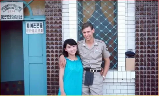 最后这张,才是今天的重头戏!一个高大的美军士兵搂着一位韩国姑娘站在UN救济站的门前,两人笑得特别甜蜜。姑娘穿着天蓝色的连衣裙,士兵则是标准的军装打扮,从他们搂在一起的姿势和笑容就能看出来,这关系绝对不一般!那个年代,这样的情侣组合承受着巨大的压力,但照片上的笑容却是真实的。爱情不分国界这话说得轻巧,可真要跨过那道鸿沟,背后的故事谁又能说得清呢?