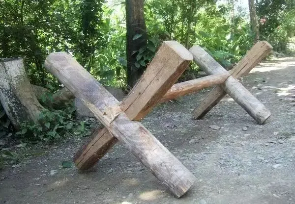 这木头交叉的东西家乡叫木墩,有的地方又唤木障碍,有人拿它拦牲口,也有人当简易栅栏,道路边摆着怕车子马儿乱串,木头粗大,眼看扎实,挪起来两个人抬才动一截,小时候躲猫猫钻到后头,大人喊着“别把衣裳钩烂了”,我偏不听,结果裤腿划一道口子,回家挨一顿絮叨,那会儿农村家伙事全靠手动,身上各处磕磕碰碰少不了。