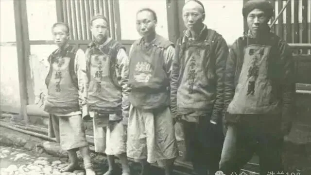 这张图上的,是戴着大布号衣的人,立在墙边,一个个都憔悴得厉害,裤头高高地卷着,光脚站在青石地上,这身衣服遮不住挨过的罪,也藏不住来路的艰难。