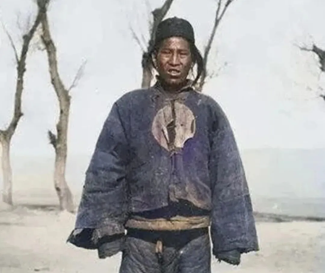 这个穿着打补丁棉袄的男子,是老照片里的晚清基层衙役,北方风沙地,树秃天灰,大伙都围着烂地慢慢走他身上的官衣已经是那年最“体面”的了,换作现在,看见准当乞丐,可祖辈就这么过活,家里没二两干饭,穿这身顶风挡沙已经很不容易,长辈说那会当差混口饭吃都不算啥出息,家里人还不太愿意提起。